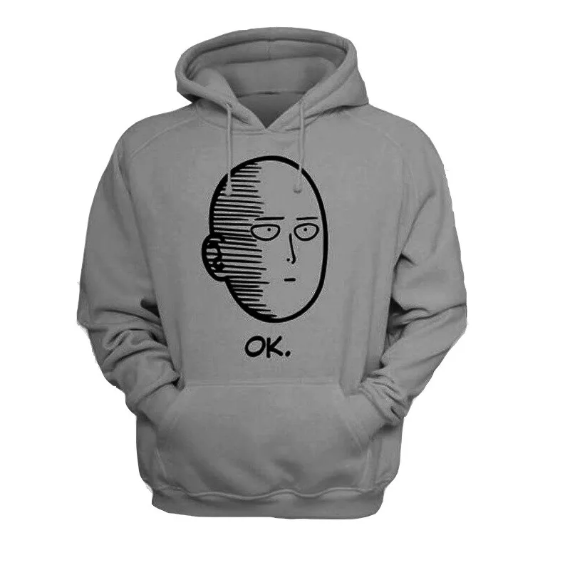 Popular manga and anime One Punch Man -writted by ONE and drawn by Murata Yuusuke- with Saitama’s epic “OK” face hoodie.
